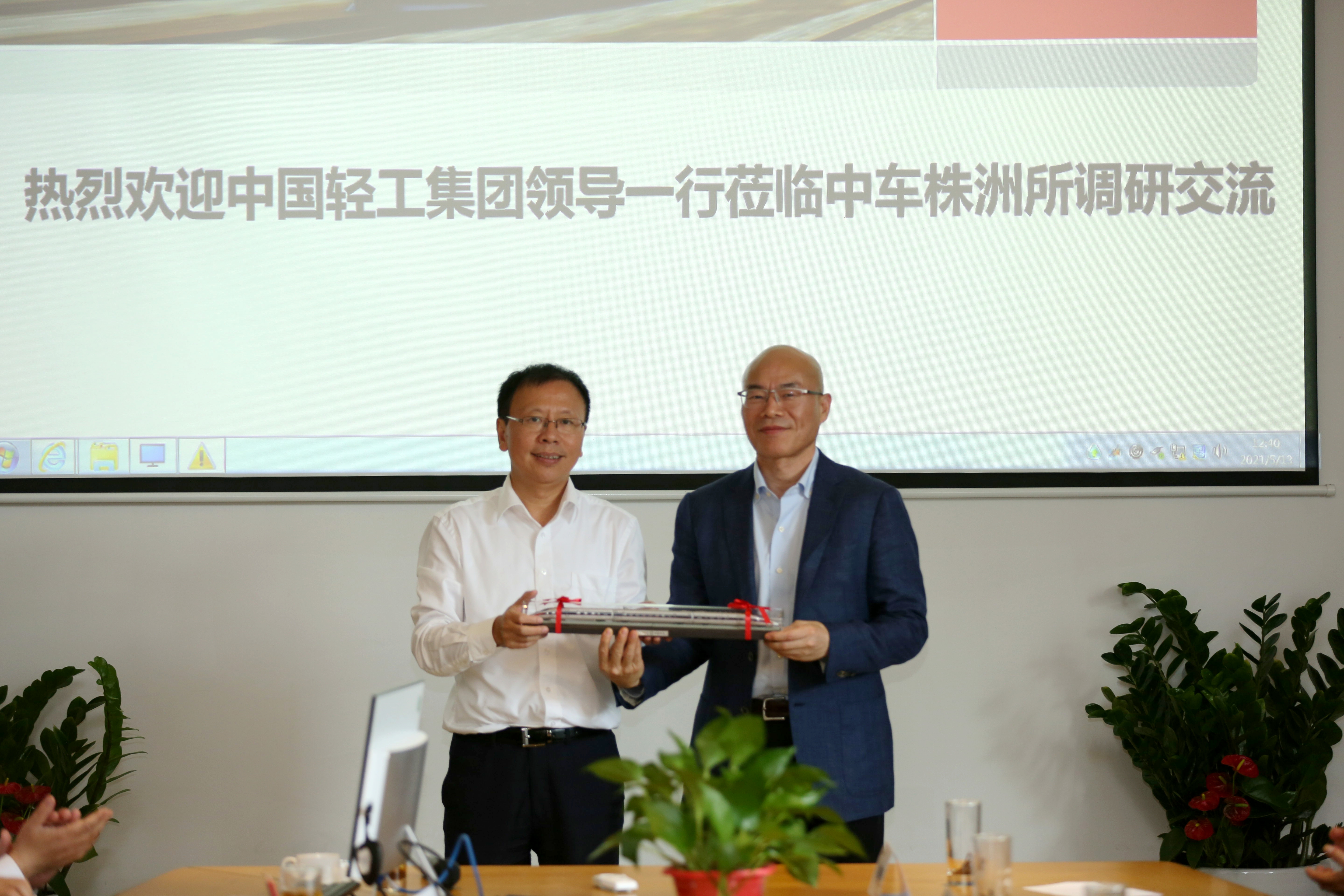 交流結(jié)束后,劉可安再次對(duì)張萬順一行到中車株洲所考察學(xué)習(xí)表示熱烈歡迎,并贈(zèng)送動(dòng)車模型紀(jì)念雙方建立良好的溝通開端,真摯期待未來進(jìn)一步開展對(duì)接合作。